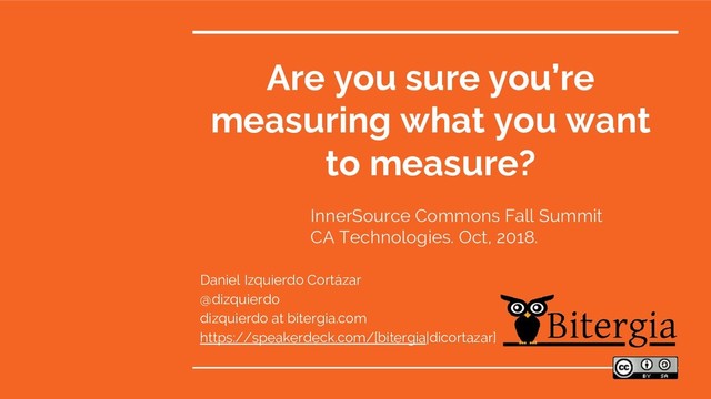 Cheating on metrics is easy. And it happens that from time to time we realize that the metrics that we thought were the right ones, are in reality the wrong ones. This talk will analyze one of the first steps that everyone is measuring in the InnerSource initiative, and these are the contributions. There are of course several types of them, and not only source code: reviews, edits in a wiki, or conversations in asynchrounous channels. However, how can we sure that we all mean the same when we measure those contributions? Does a commit have the same meaning for everyone? Have we ever thought about automated actions by bots, merge commits, or people adding tabs to the source code? And even more, is better to measure commits than source code lines? And what about files?