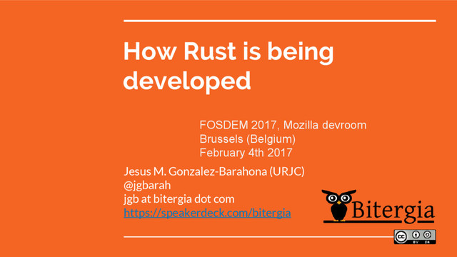 the gang of Bitergia founders Involved in the company since then http://bitergia.com I work at Universidad Rey Juan Carlos... ...researching about software development http://gsyc.es/~jgb My two hats: