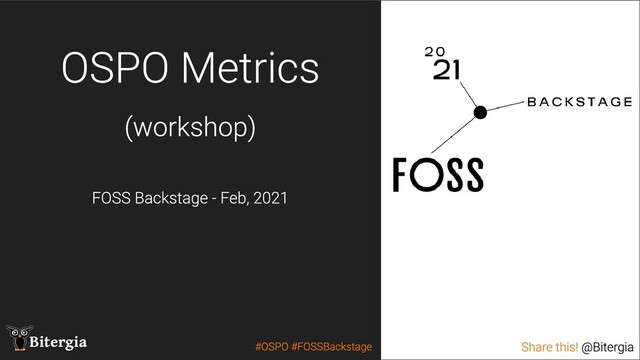* A set of various OSPO metrics and how to start building your own metrics strategy goal-question-metric approach.
