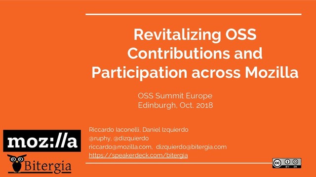 Talk delivered by Riccardo Iaconelli, Mozilla and Daniel Izquierdo, Bitergia at the Open Source Summit Europe in 2018.