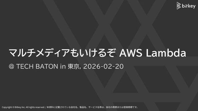 7. Copyright © Bitkey Inc. All rights reserved. / 本資料に記載されている会社名、製品名、サービス名等は、各社の商標または登録商標です。 Lambda