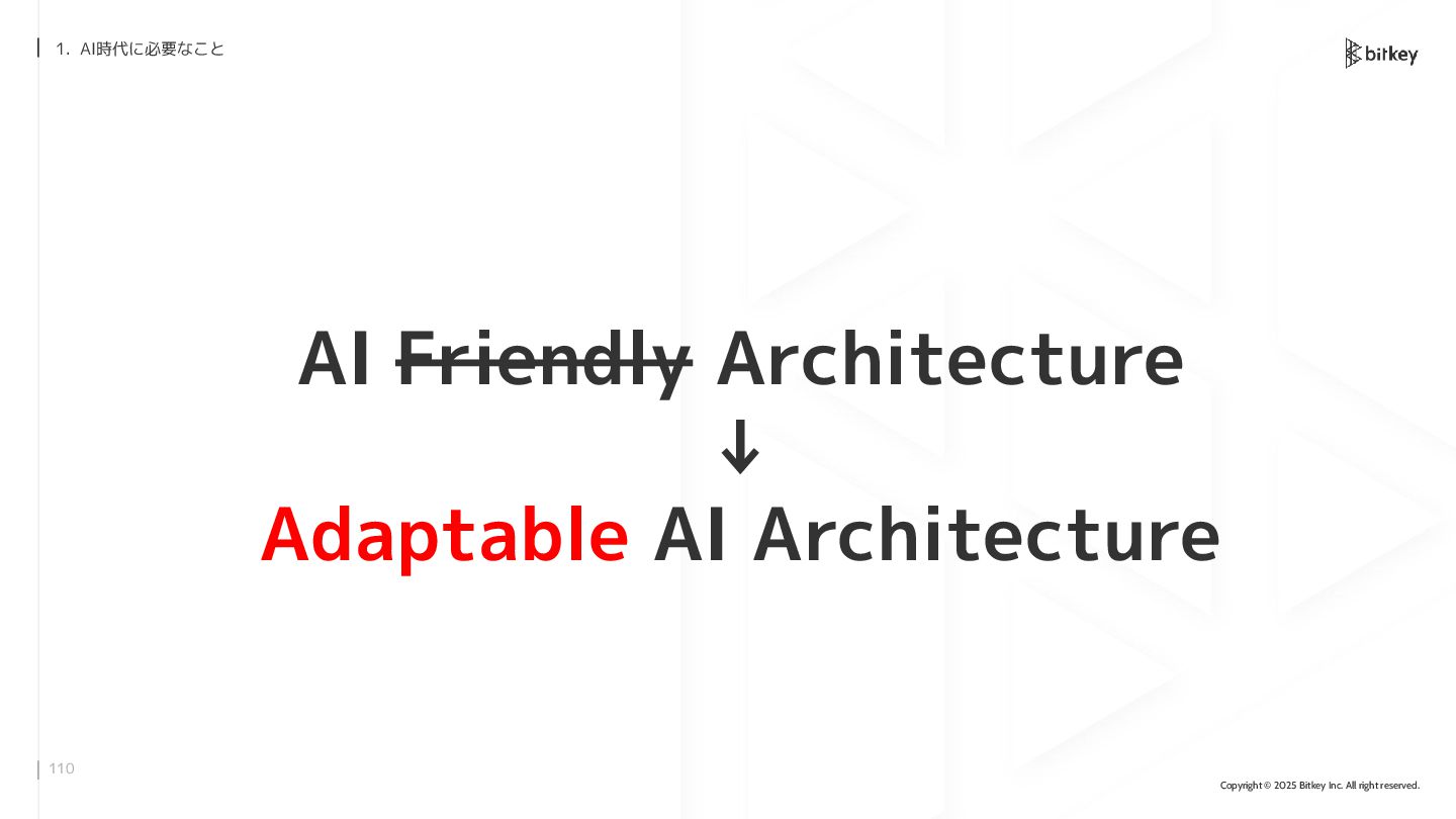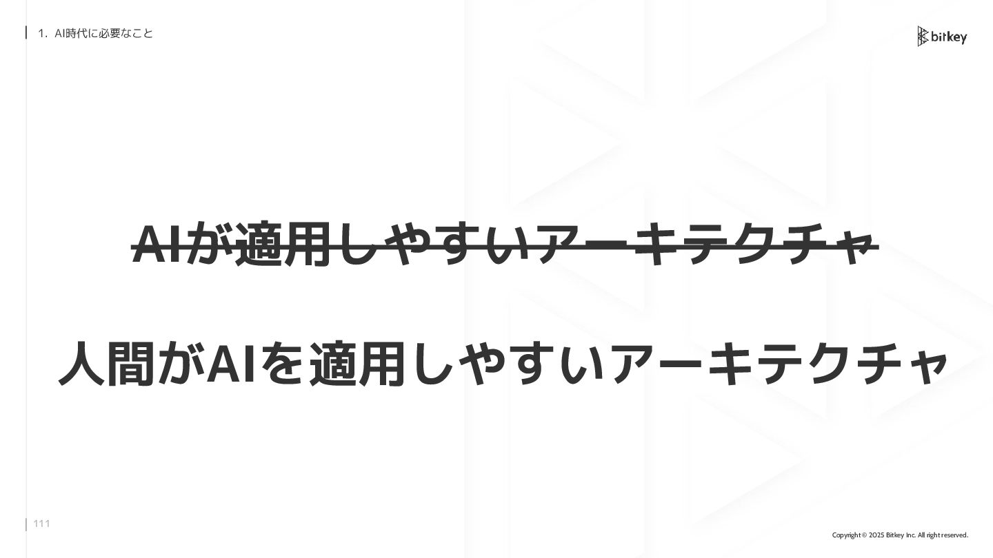 98. 111 Copyright © 2025 Bitkey Inc. All right reserved. AIが適用しやすいアーキテクチャ