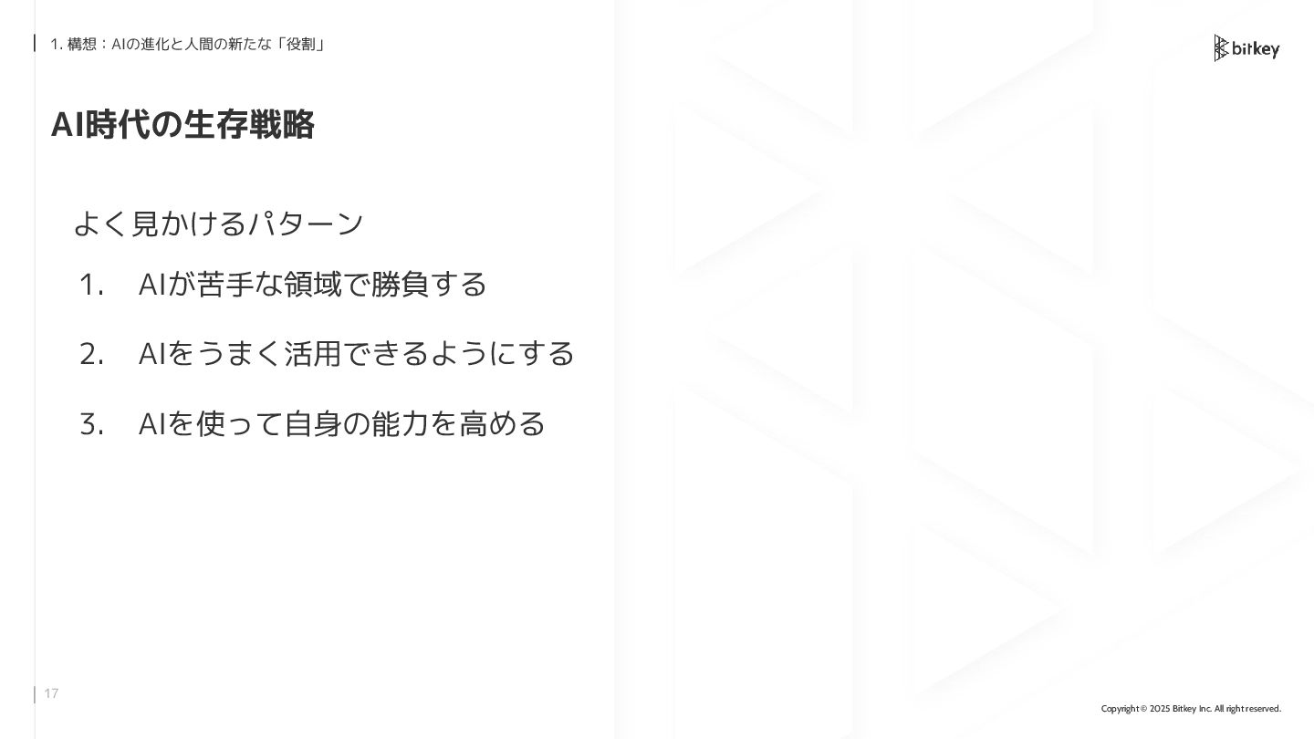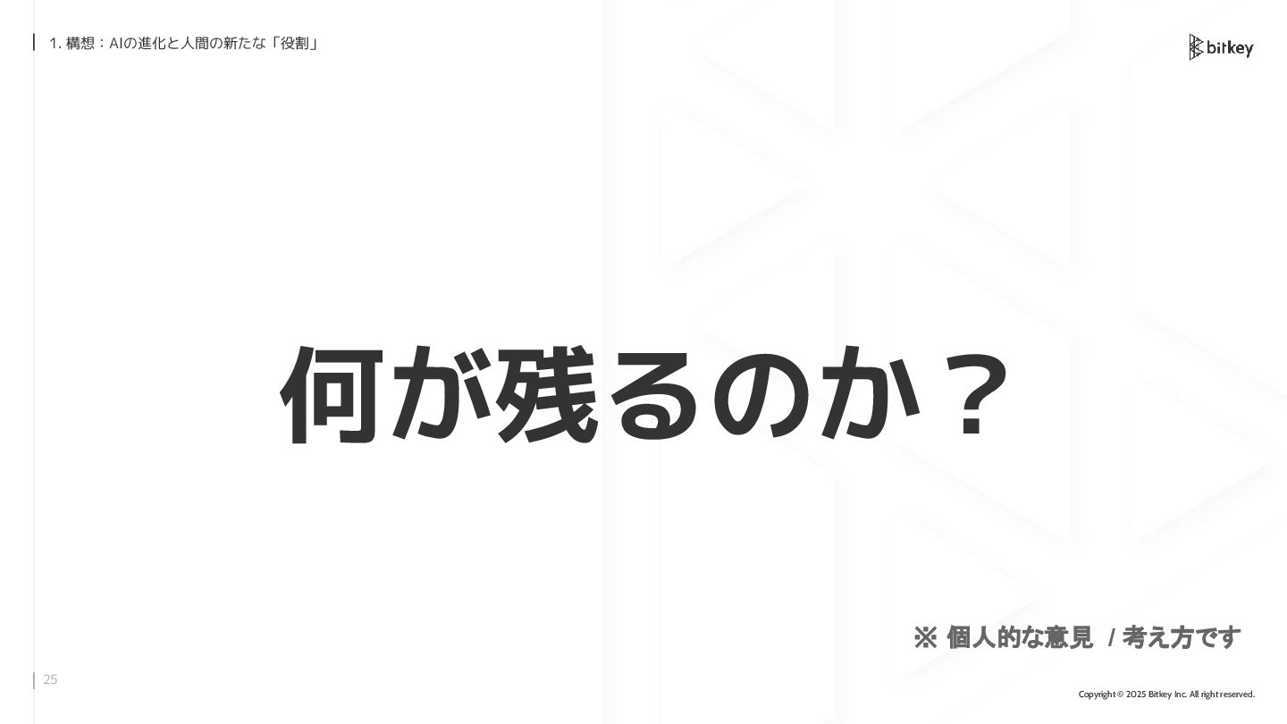 17. 23 Copyright © 2025 Bitkey Inc. All right reserved. 人間にしかできない領域がある?