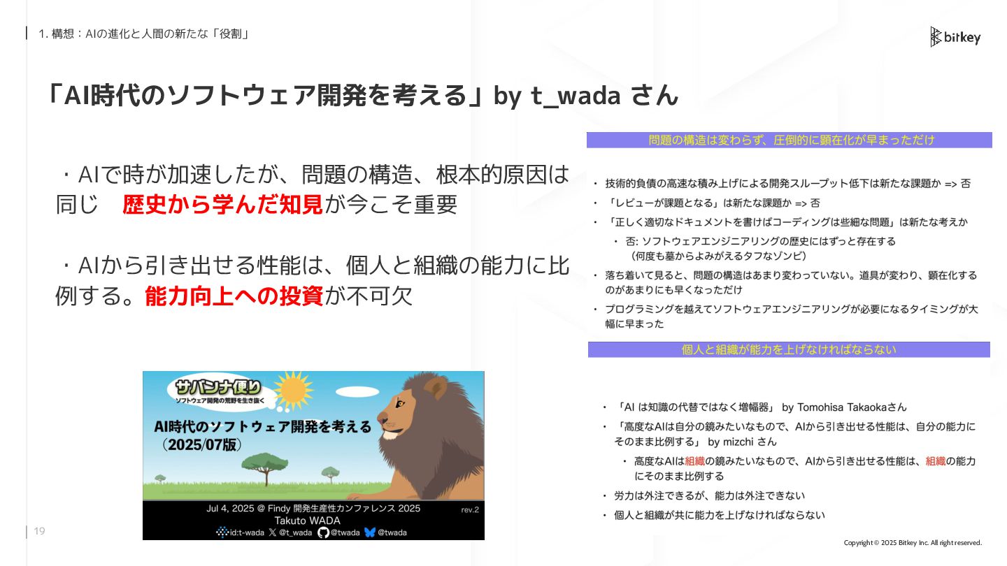 13. 19 Copyright © 2025 Bitkey Inc. All right reserved. 「AI時代のソフトウェア開発を考える」by