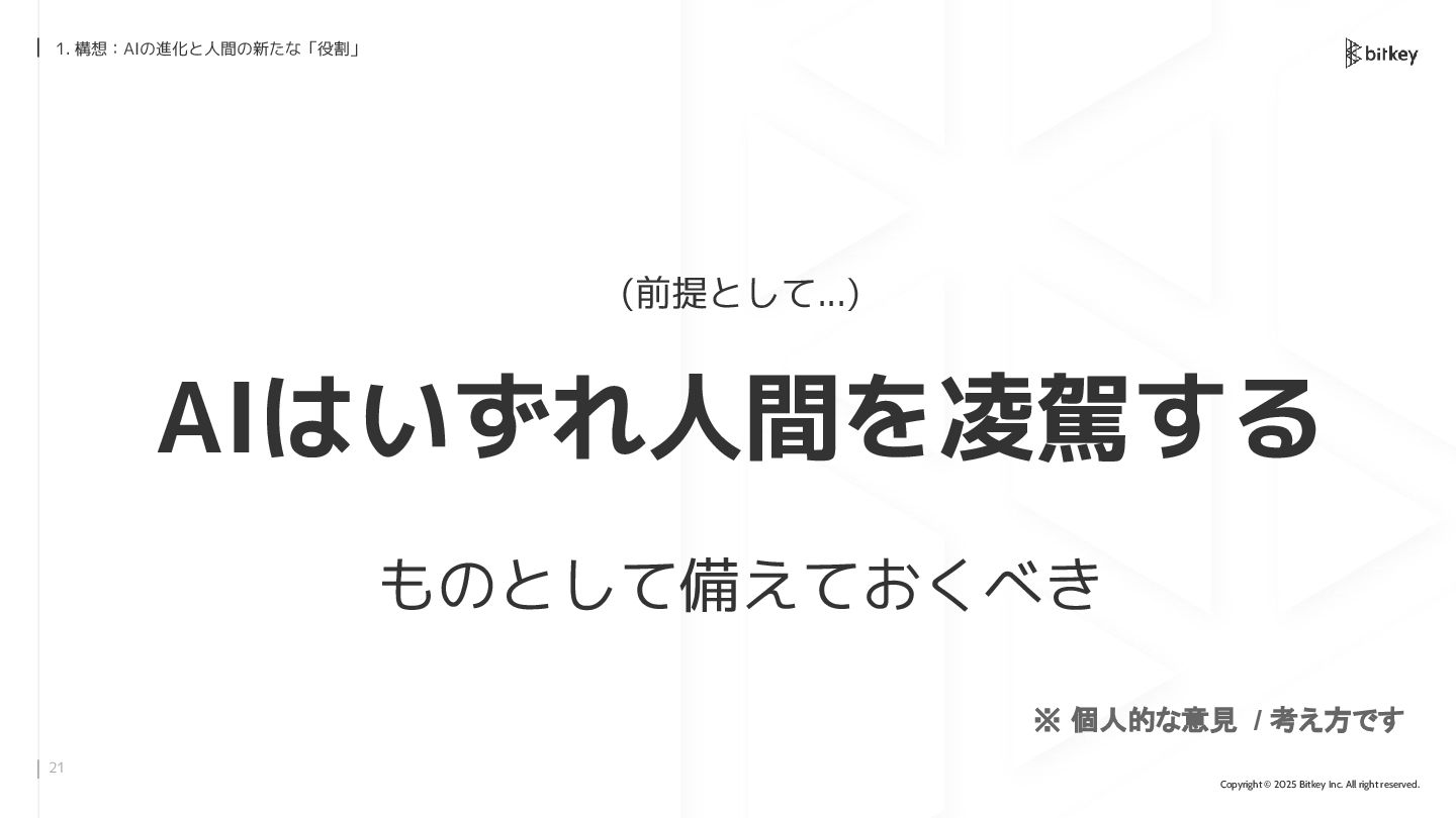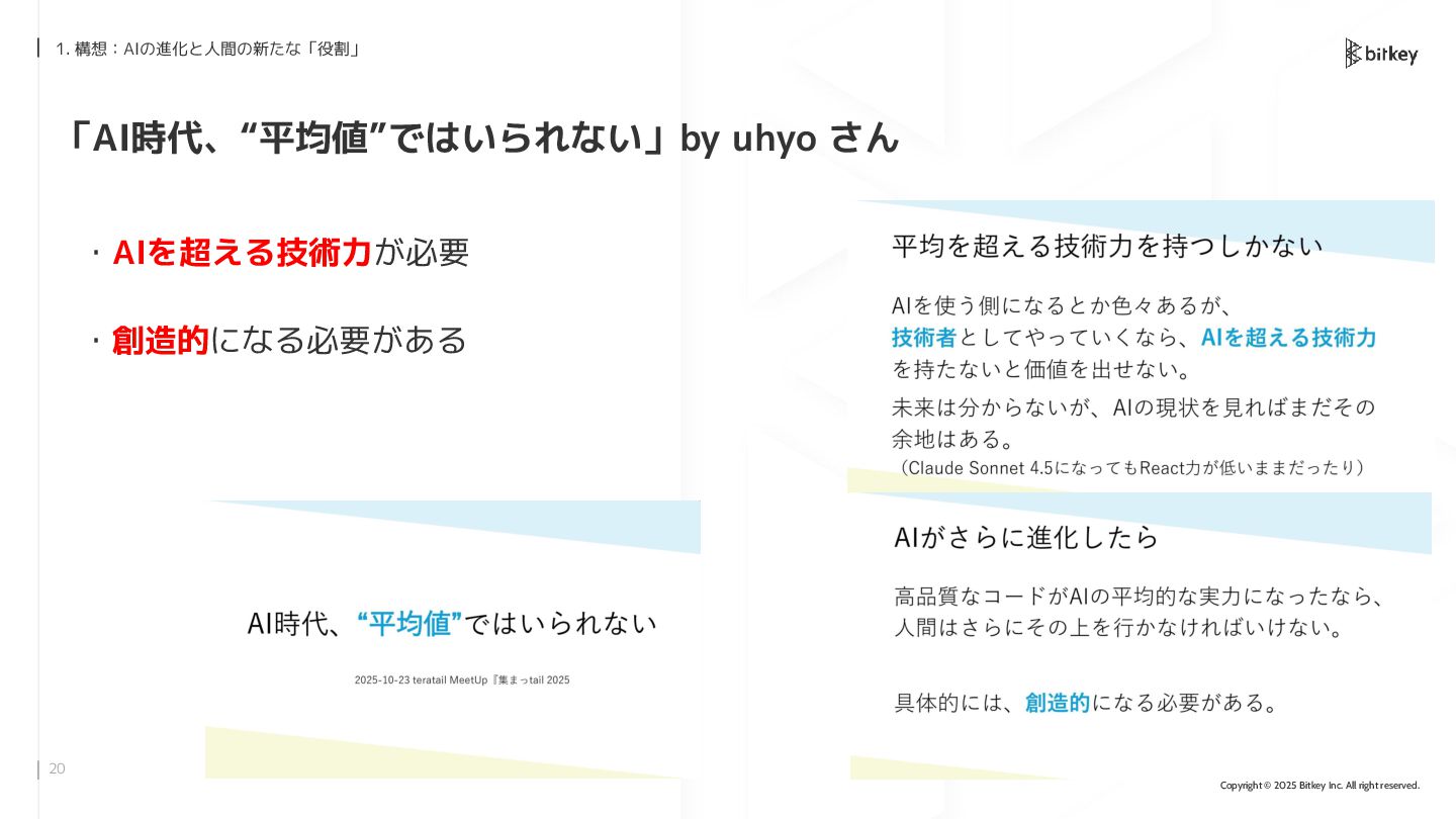 14. 20 Copyright © 2025 Bitkey Inc. All right reserved. 「AI時代、“平均値”ではいられない」by