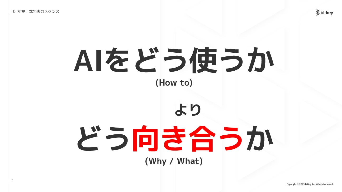 2. 3 Copyright © 2025 Bitkey Inc. All right reserved. AIをどう使うか