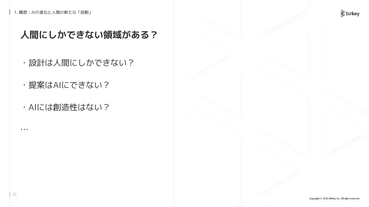 16. 22 Copyright © 2025 Bitkey Inc. All right reserved. 人間にしかできない領域がある?