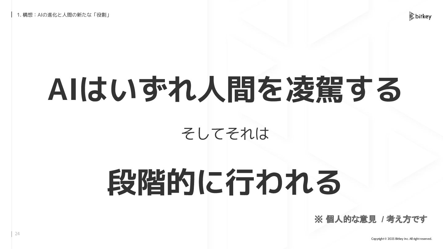 18. 24 Copyright © 2025 Bitkey Inc. All right reserved. AIはいずれ人間を凌駕する