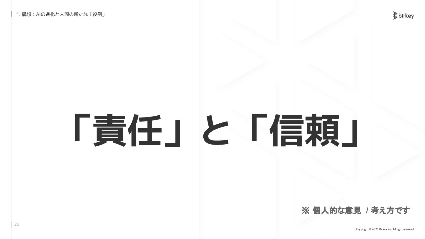 20. 26 Copyright © 2025 Bitkey Inc. All right reserved. 「責任」と「信頼」