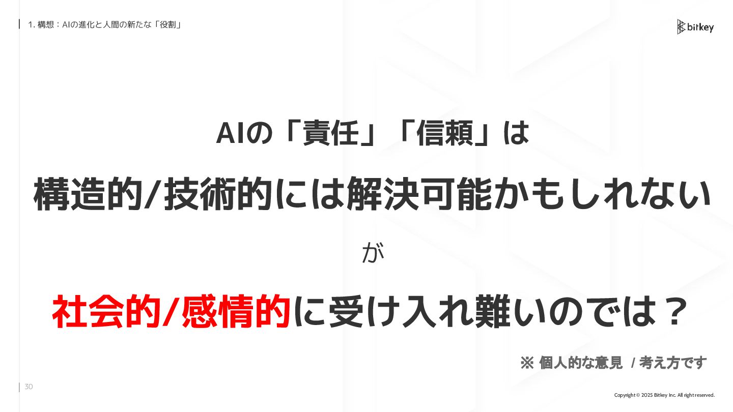 24. 30 Copyright © 2025 Bitkey Inc. All right reserved. AIの「責任」「信頼」は