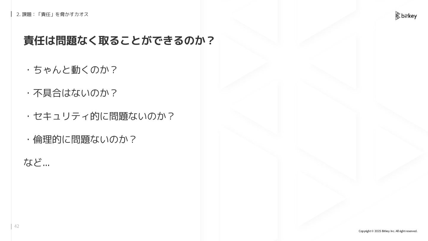 42. 49 Copyright © 2025 Bitkey Inc. All right reserved. 補足:責任のインフレ