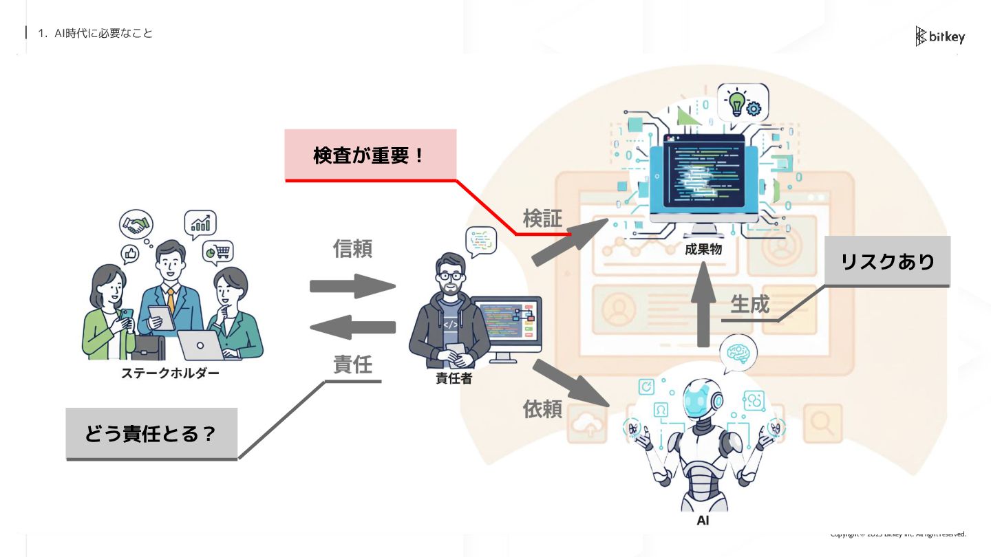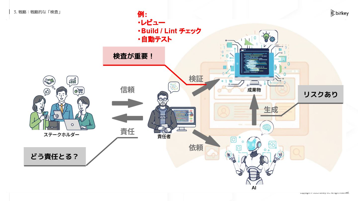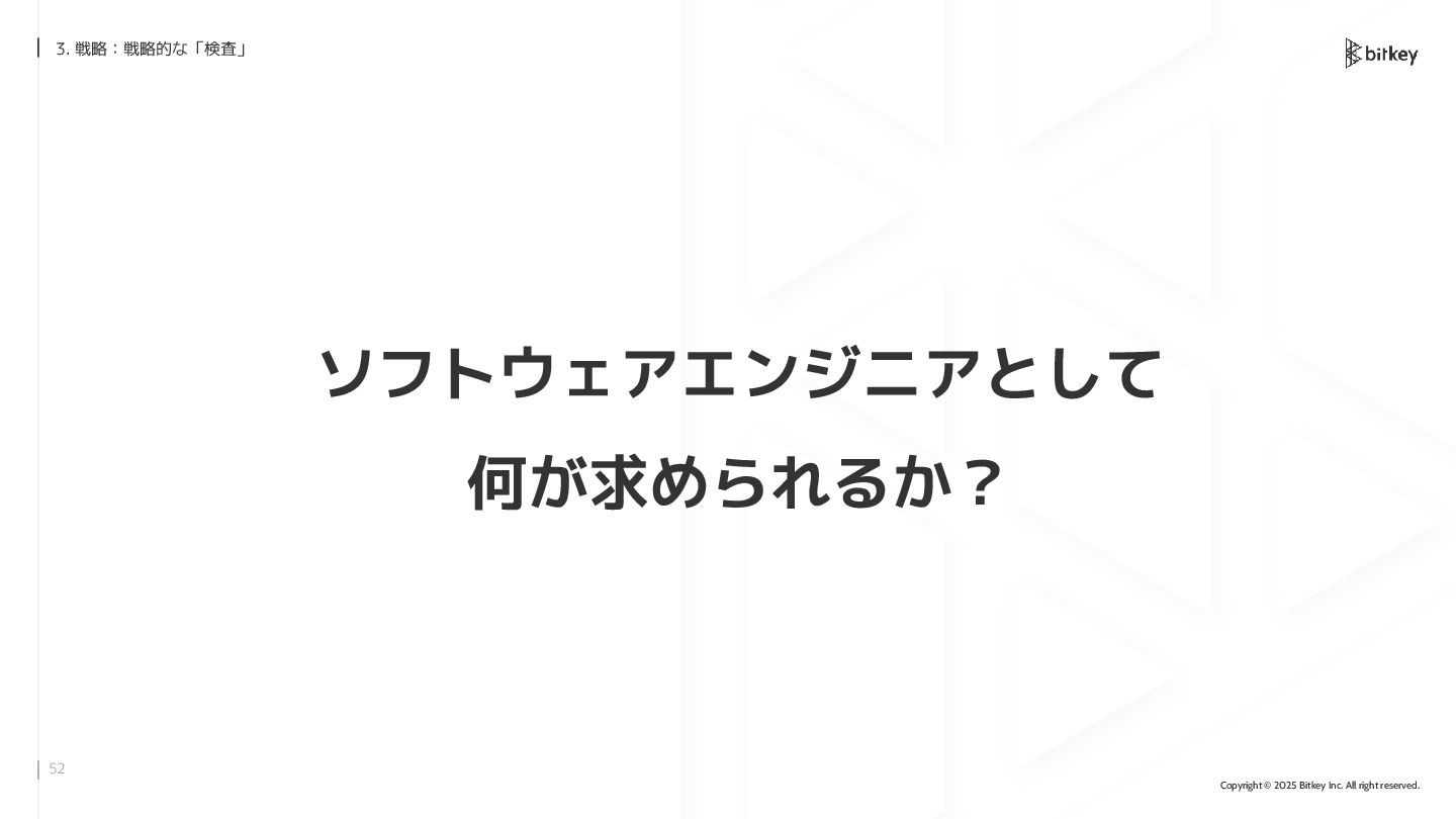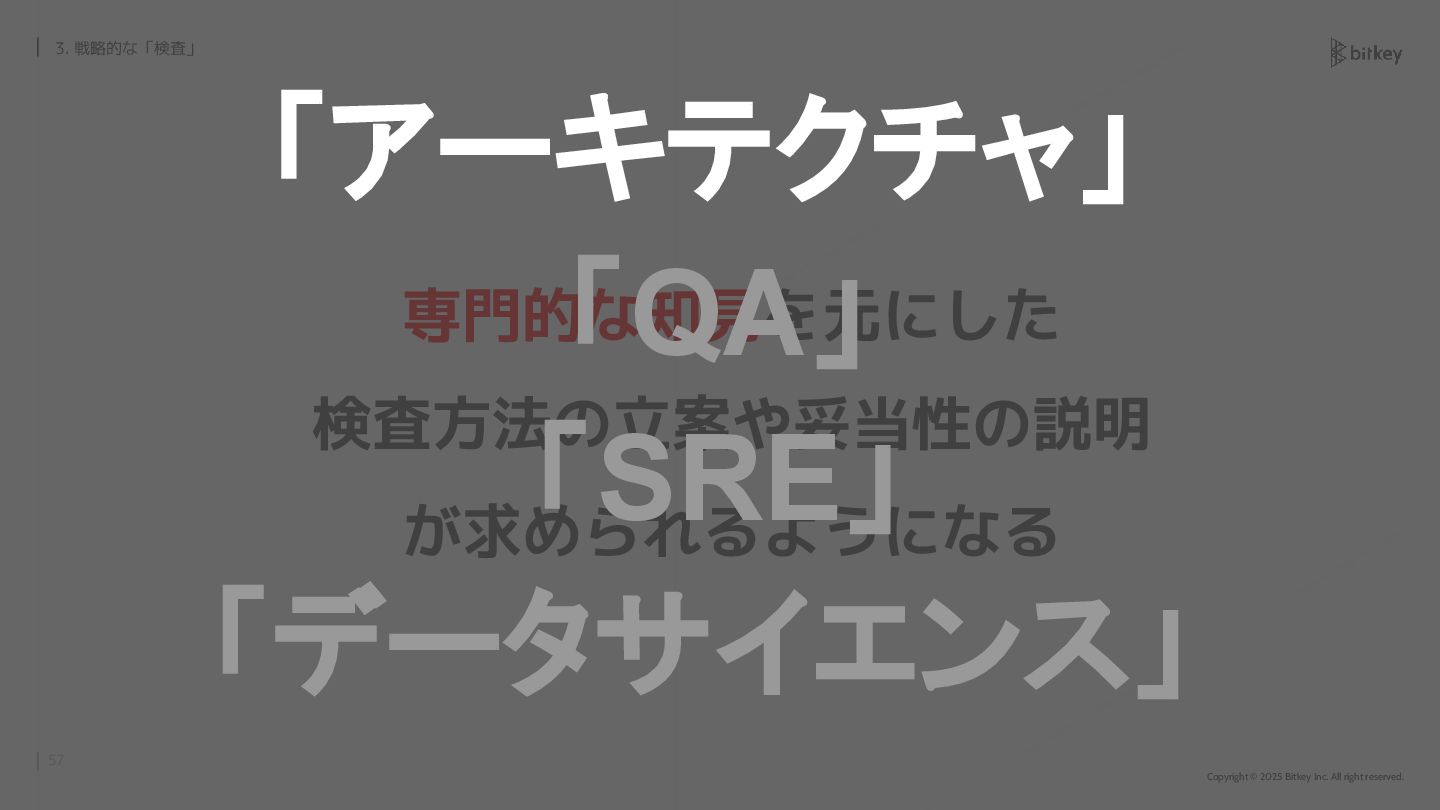 72. 81 Copyright © 2025 Bitkey Inc. All right reserved. 将来的には、人間が行う「検査」は、コードの確認では