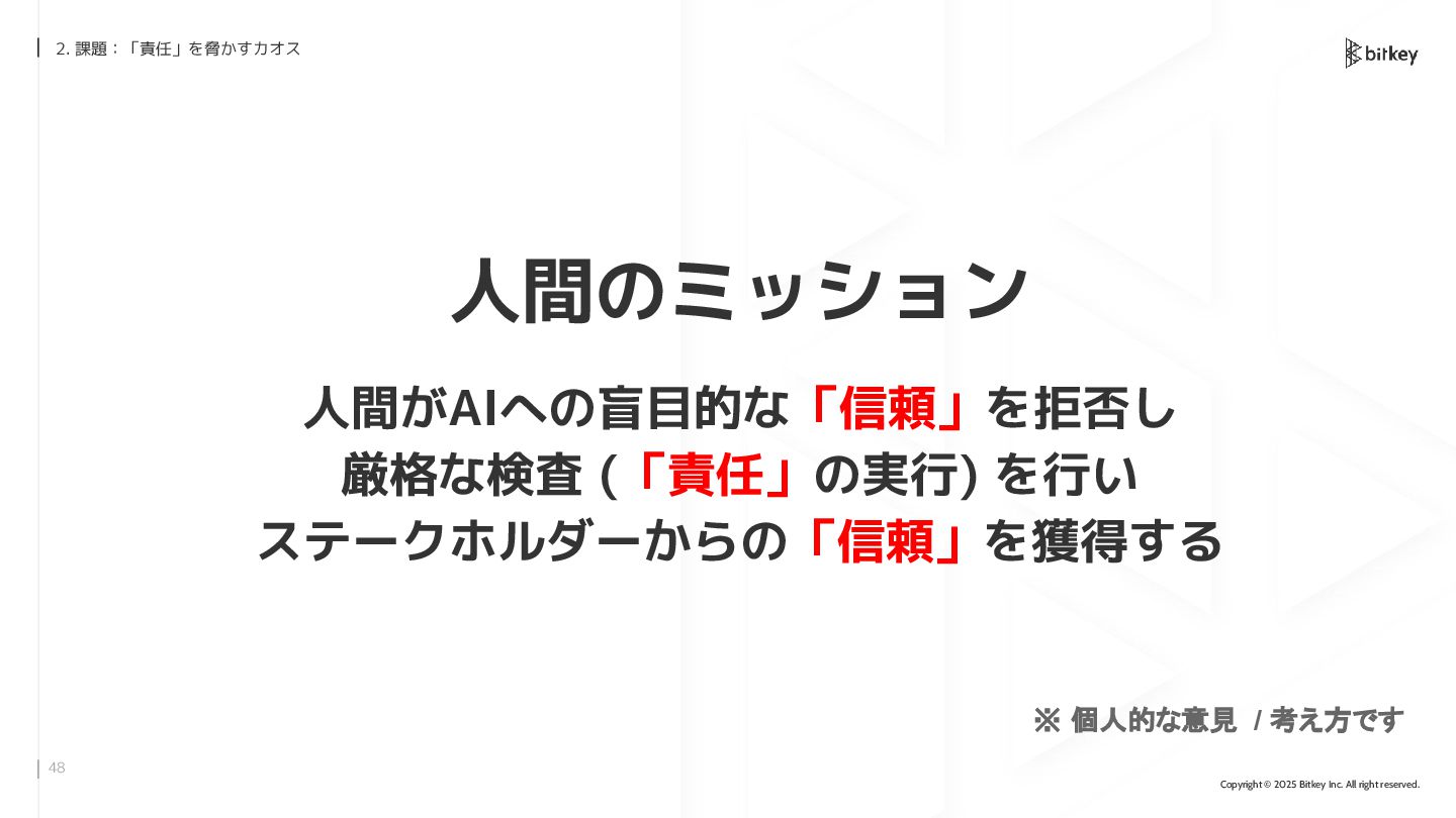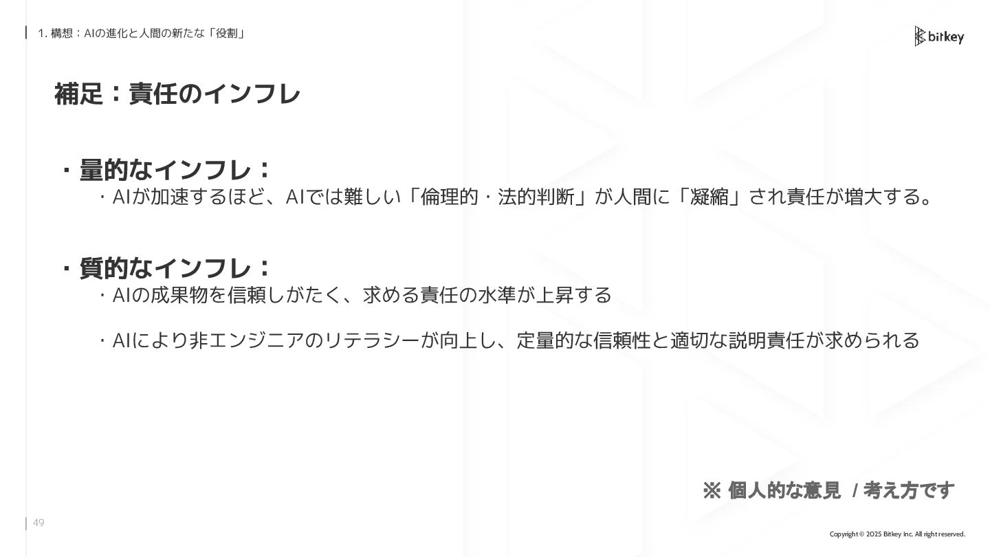 43. 50 Copyright © 2025 Bitkey Inc. All right reserved. 補足:責任のインフレ