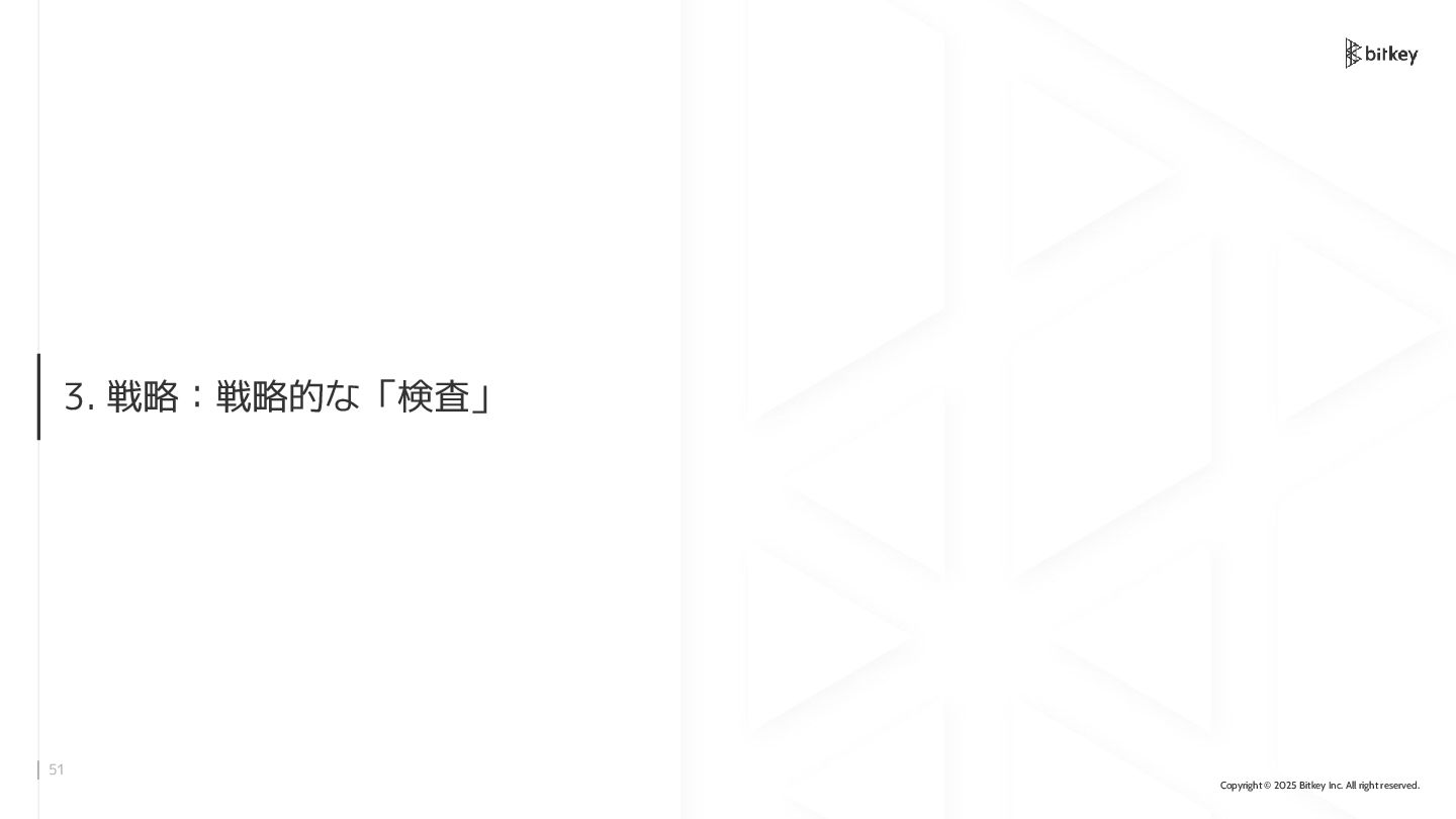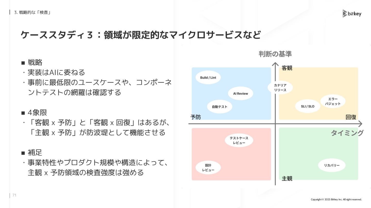 70. 79 Copyright © 2025 Bitkey Inc. All right reserved. ・観点1:限られた範囲で検査可能とする