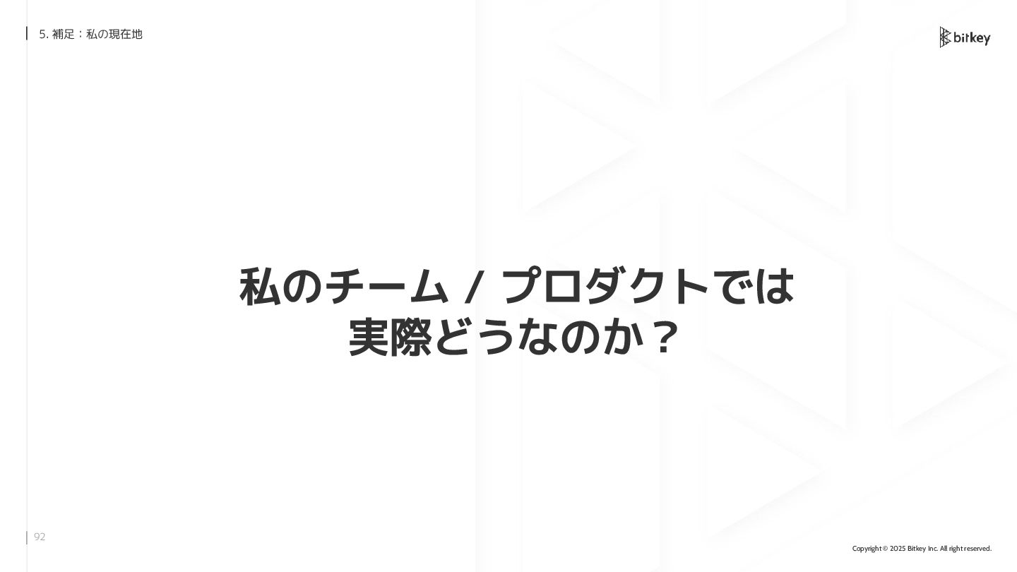 補足:私の現在地 私のチーム / プロダクトでは 実際どうなのか?