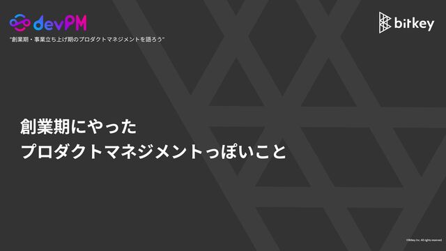 ©Bitkey Inc. All rights reserved. 創業期にやった プロダクトマネジメントっぽいこと “創業期・事業立ち上げ期のプロダクトマネジメントを語ろう”