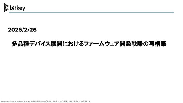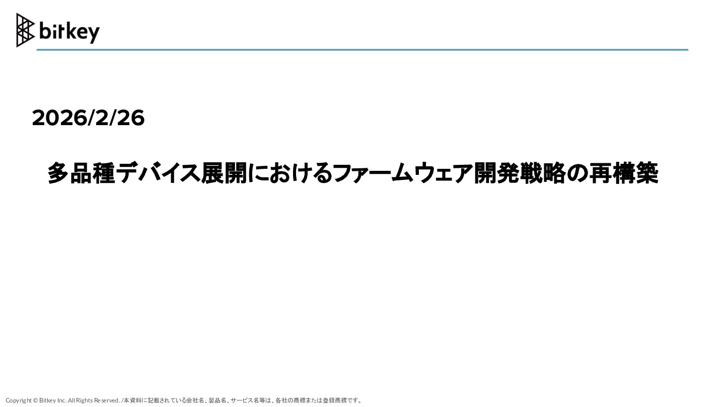 1. 2026/2/26 多品種デバイス展開におけるファームウェア開発戦略 再構築 Copyright © Bitkey Inc. All Rights Reserved.