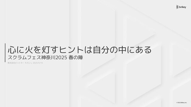 © 2025 Bitkey Inc. 心に火を灯すヒントは自分の中にある スクラムフェス神奈川2025 春の陣 株式会社ビットキー もろこし 2025/3/15