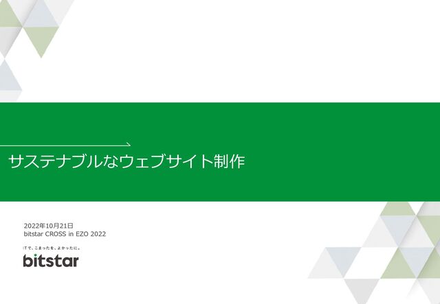 2022年10月21日に行われた「BITSTAR CROSS in EZO 2022」において行われた講演「サステナブルなウェブサイト制作」のスライド資料です。 継続してサイトを構築・運用していくために必要な心構えについてお話しています。