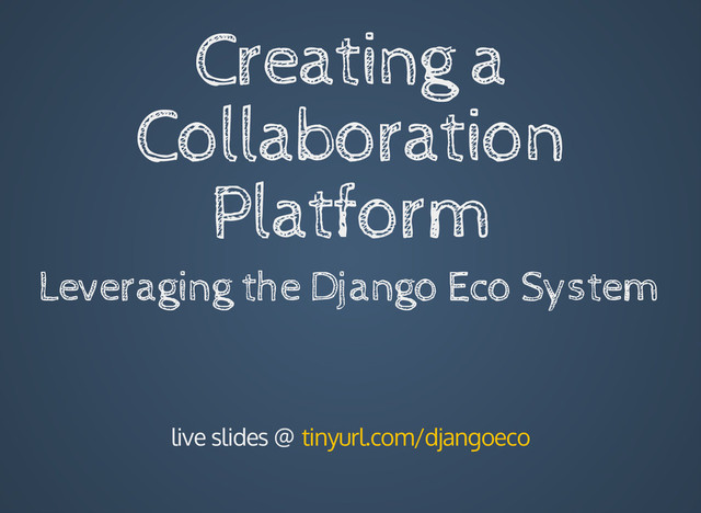 From the DjangoVillage 2014 event at Orvieto (Italy). These slides are generated PDFs from the original presentation on slides.com (powered by reveal.js). I apologize for the poor quality. See the original at http://slides.com/bittner/creating-a-collaboration-platform