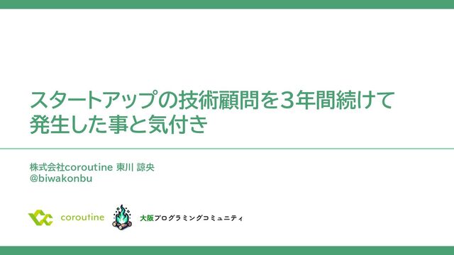 スタートアップの技術顧問を3年間続けて 発生した事と気付き 株式会社coroutine 東川 諒央 @biwakonbu