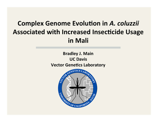 This talk was presented to the Center for Population Biology group at UC Davis on October 6, 2015. I highlight previous work on speciation involving the sister mosquito species A. gambiae and A. coluzzii, most of which was done by the Vector Genetics Lab (led by Greg Lanzaro) and Drosophila folks from Davis. I also share some more preliminary work on complex insecticide resistance that appears to be increasing rapidly in these mosquitoes.