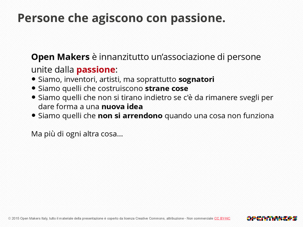 Un'introduzione all'attività svolta da Open Makers Italy a cura di Salvatore Carotenuto e Daniele Costarella: attività, articoli, progetti e workshop in cantiere. Dritti poi nel mondo della stampa 3D: dal modello tridimensionale all'oggetto pronto all'uso. Sono trattati i principi della stampa 3D, con dettagli sulle impostazioni e sui materiali di estrusione. Il talk si chiude con la presentazione di una mano robotica stampata controllata tramite Arduino da un guanto indossabile.