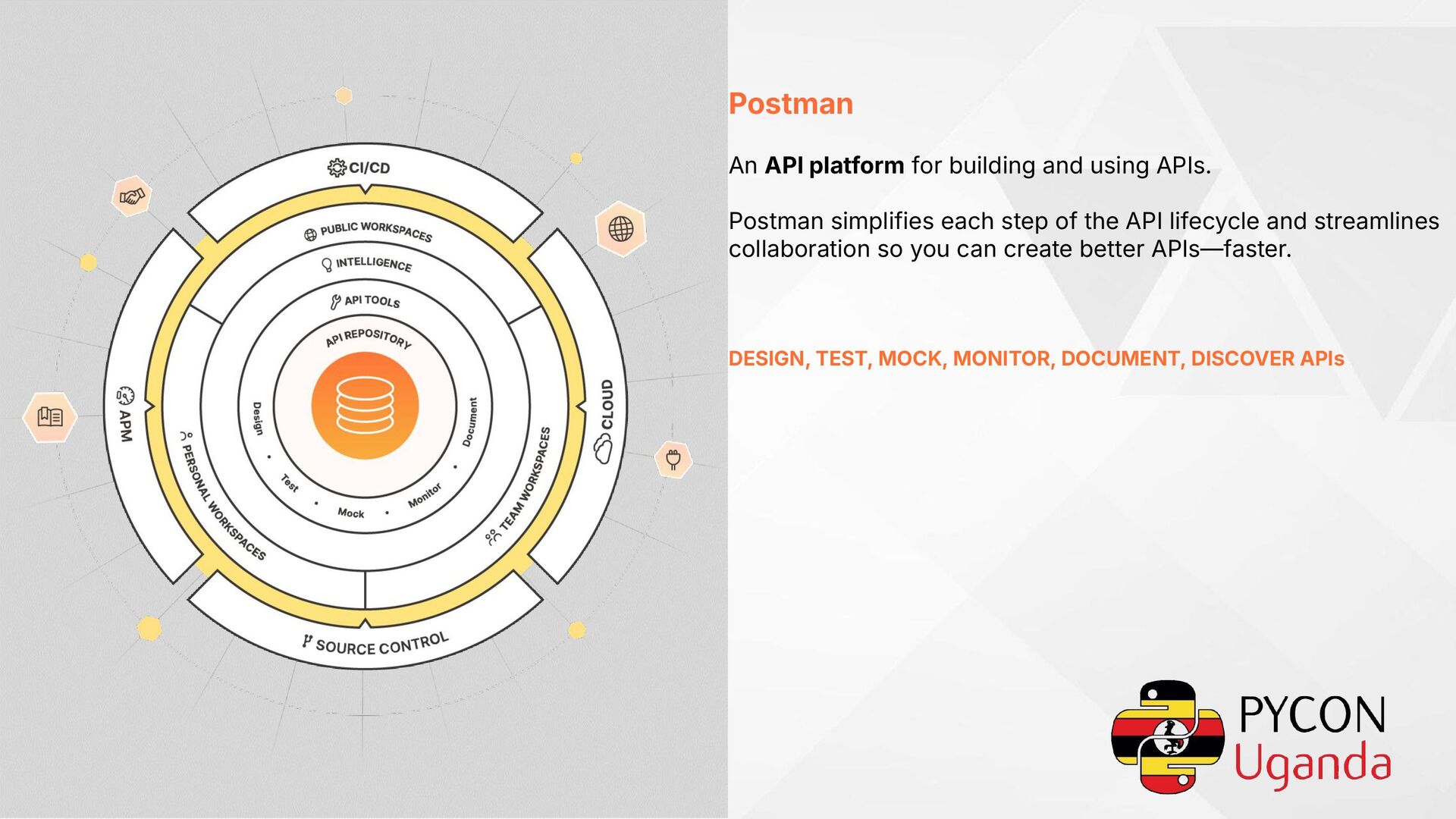 simplifies each step of the API lifecycle and streamlines collaboration so you can create better APIs—faster. DESIGN, TEST, MOCK, MONITOR, DOCUMENT, DISCOVER APIs