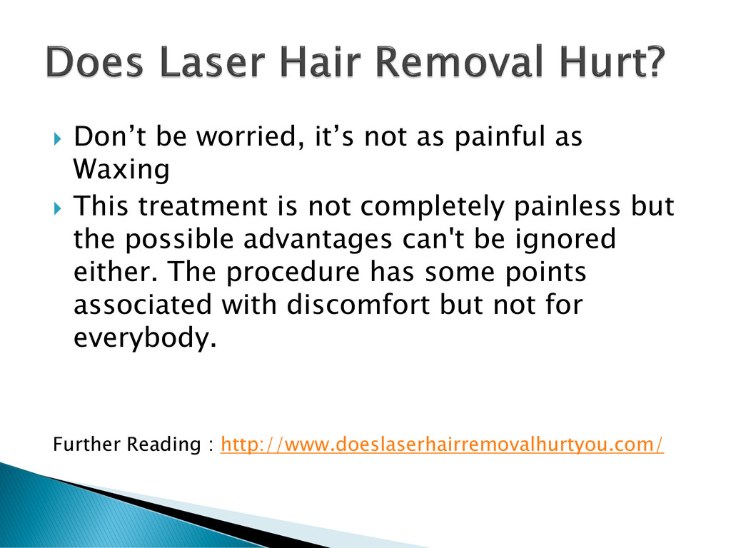 This treatment is not completely painless but the possible advantages can't be ignored either. The procedure has some points associated with discomfort but not for everybody. Further Reading : http://www.doeslaserhairremovalhurtyou.com/