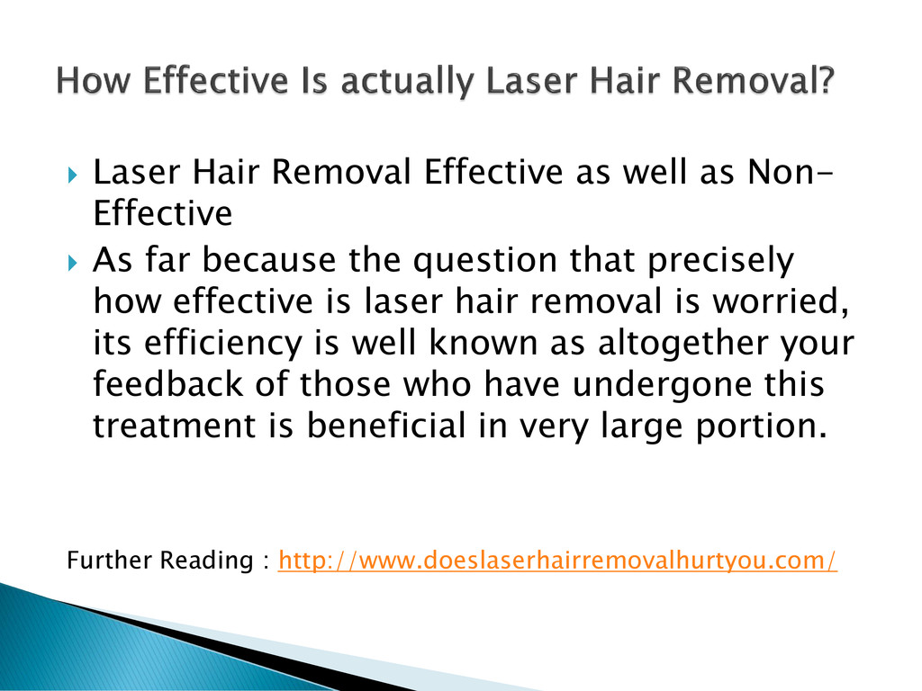 As far because the question that precisely how effective is laser hair removal is worried, its efficiency is well known as altogether your feedback of those who have undergone this treatment is beneficial in very large portion. Further Reading : http://www.doeslaserhairremovalhurtyou.com/
