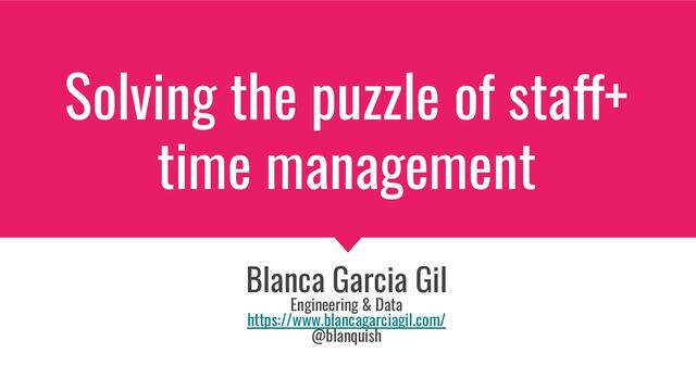 Step into a staff plus role, where you find yourself working across teams or departments and leading initiatives that span much longer than the typical agile sprint. You have ambitious goals, but how do you adapt to this change? How do you take ownership of your time? How do you make sure you are spending the time on what you need to?