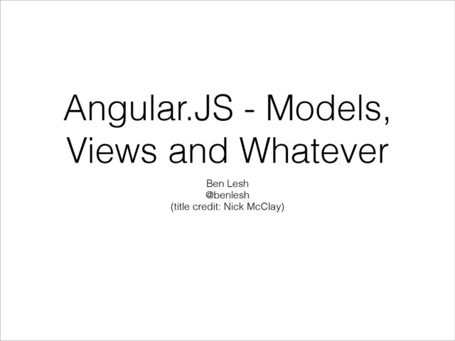 Well, technically, at this point you’ve seen a “View”. … It’s just HTML. And we do have controllers, actually. ! Here’s one way to wire up a controller: ! Example: ! <div ng-controller=“MyCtrl”>! Who am I controlled by? {{controllerName}}! </div>