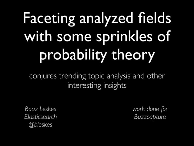 trending topic analysis and other interesting insights Boaz Leskes Elasticsearch @bleskes work done for Buzzcapture