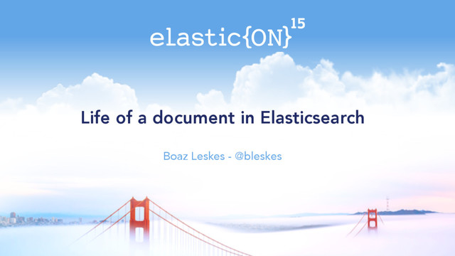 This talk will explain the when, where and why of your document's life inside of Elasticsearch. Alex and Boaz will take you through the journey of a document across a cluster, taking off with JSON and the curly braces, travelling through the network into the memory and all the analysis chains, heading further onto storage when writing into the transaction logs and Apache Lucene index, being read back by executing searches, all the way until the document is finally deleted.