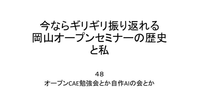 今ならギリギリ振り返れる 岡山オープンセミナーの歴史 と私 48 オープンCAE勉強会とか自作AIの会とか