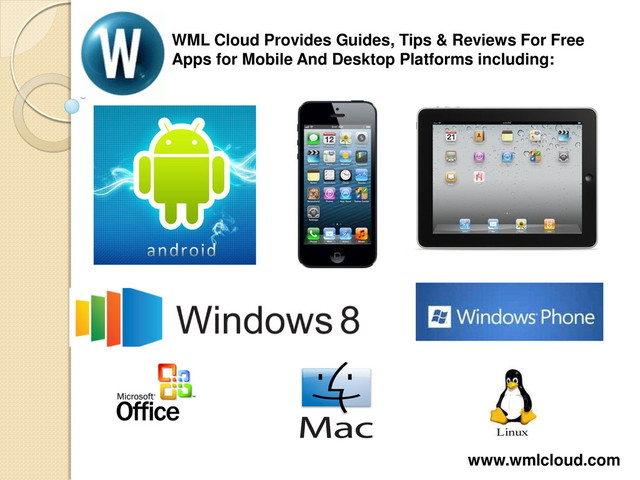 WML Cloud provides application reviews for Windows 8, Windows 7, Mac OS X, Windows Servers, Android, iOS and Windows Phone 8. We also exclusively cover Google Nexus 7, Microsoft Office 2013 and Amazon Kindle Fire. Visit: www.wmlcloud.com