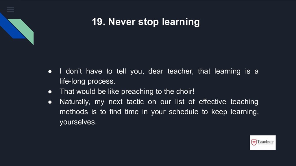 Yesterday, a fourteen-year-old student in the tenth grade told me, “My favourite teacher knew how to teach what she was teaching. That made a difference to me and really stood out.” The thing is, she’s not the only student feeling this way. Most students out there (yours truly included) feel a special connect with teachers who use effective teaching methods.