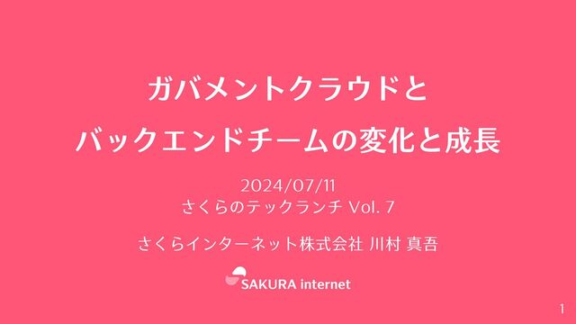 ガバメントクラウドと バックエンドチームの変化と成長 2024/07/11 さくらのテックランチ Vol. 7 さくらインターネット株式会社 川村 真吾 1