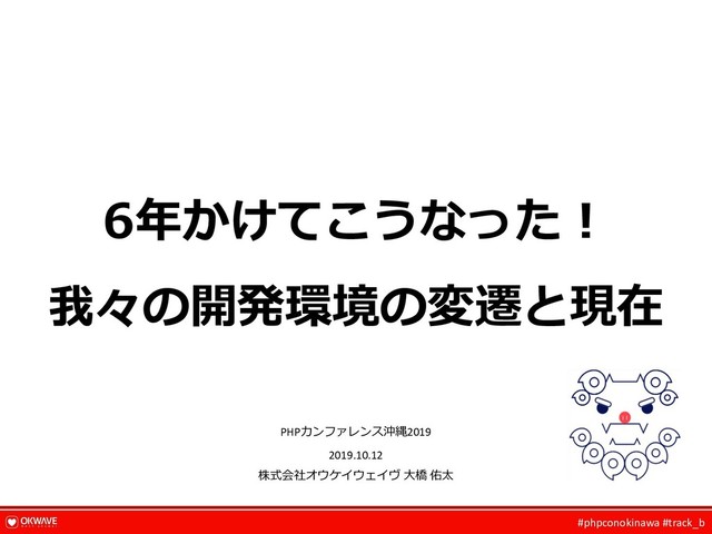 #phpconokinawa #track_b 6年かけてこうなった︕ 我々の開発環境の変遷と現在 PHPカンファレンス沖縄2019 2019.10.12 株式会社オウケイウェイヴ ⼤橋 佑太