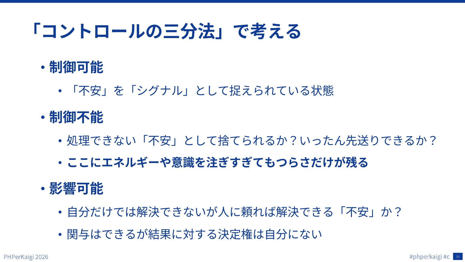 「コントロールの三分法」で考える「コト」への向き合い方 / phperkaigi2026