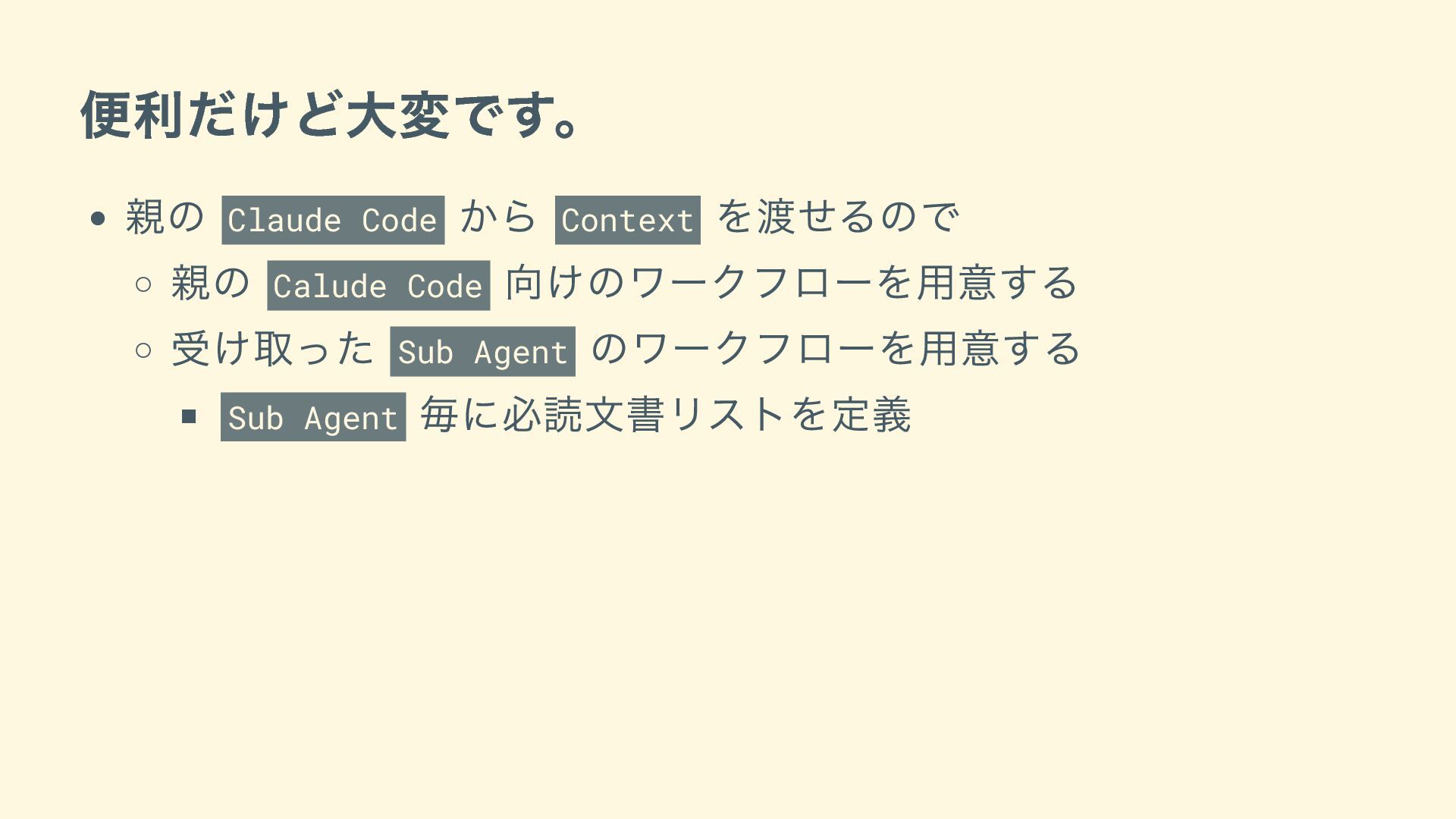 便利だけど大変です。 親の Claude Code から Context を渡せるので 親の Calude Code