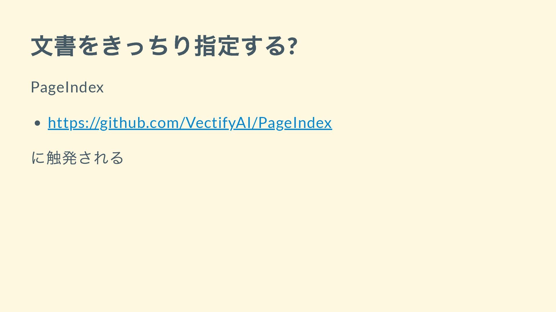 文書をきっちり指定する? PageIndex https://github.com/VectifyAI/PageIndex に触発される
