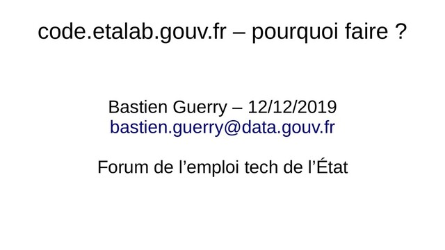 ? => Trouvez les technologies qui vous intéressent dans ce que fait le secteur public ! • Vous êtes un organisme public ? => Venez voir pourquoi et comment les autres organismes publient les codes sources de leurs logiciels ! • Le code source de https://code.etalab.gouv.fr est ouvert, vos suggestions sont les bienvenues !