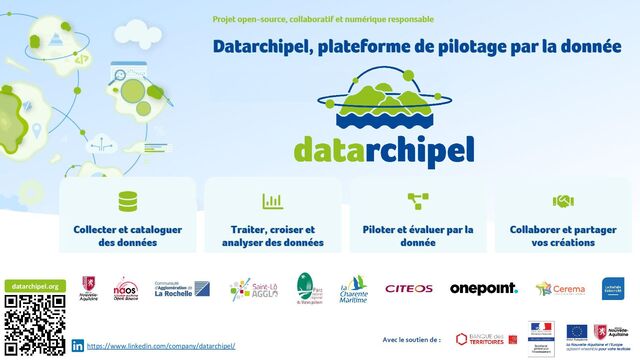 commun Initialement créée pour les besoins de la Communauté d’Agglomération de La Rochelle, la plateforme de données datarchipel s’inscrit dans une démarche de commun numérique avec une gouvernance partagée, à travers un accord de partenariat ouvert. Différents partenaires sont impliqués pour coconstruire, promouvoir, et assurer la pérennité de la plateforme. 3 Des règles partagées, collaboratives et adaptatives Un code source (logiciel) et des documentations Collectivités, entreprises, universités, associations, … Pourquoi choisir le modèle des communs numériques ? • La mutualisation des moyens • La pérennisation, l'émancipation et la résilience • La réutilisation et la réplication • La création d’une référence dans un domaine « Un Commun désigne un ensemble de ressources entretenues collectivement par une communauté d’acteurs hétérogènes, gouverné selon des règles qui lui assurent son caractère collectif et partagé. »