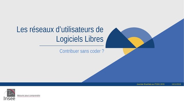 les logiciels libres (Re)Construire une meilleure pratique Réseau LibreOffice Transition de MS Office 2000 à LibreOffice Piloter l’usage de LibreOffice à l’Insee (assistance, changements de version) Le réseau LS² Logiciels statistiques en Libre Service De SAS à une palette d’outils (et langages) statistiques (R, Qgis, PostgreSQL, Python) Construire une Infrastructure de calcul adaptée (Besoins et Communs)