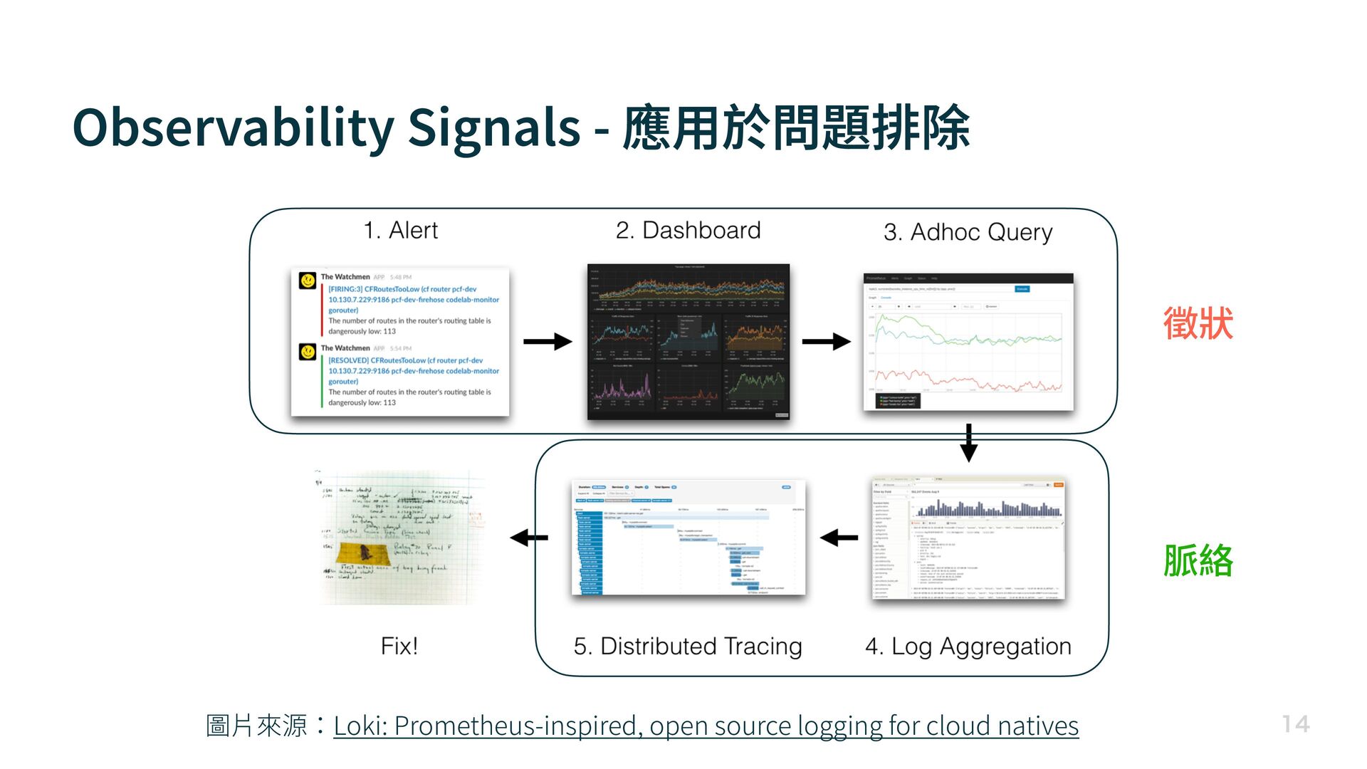 Observability Signals - 應 用 於問題排除 圖 片 來源:Loki: