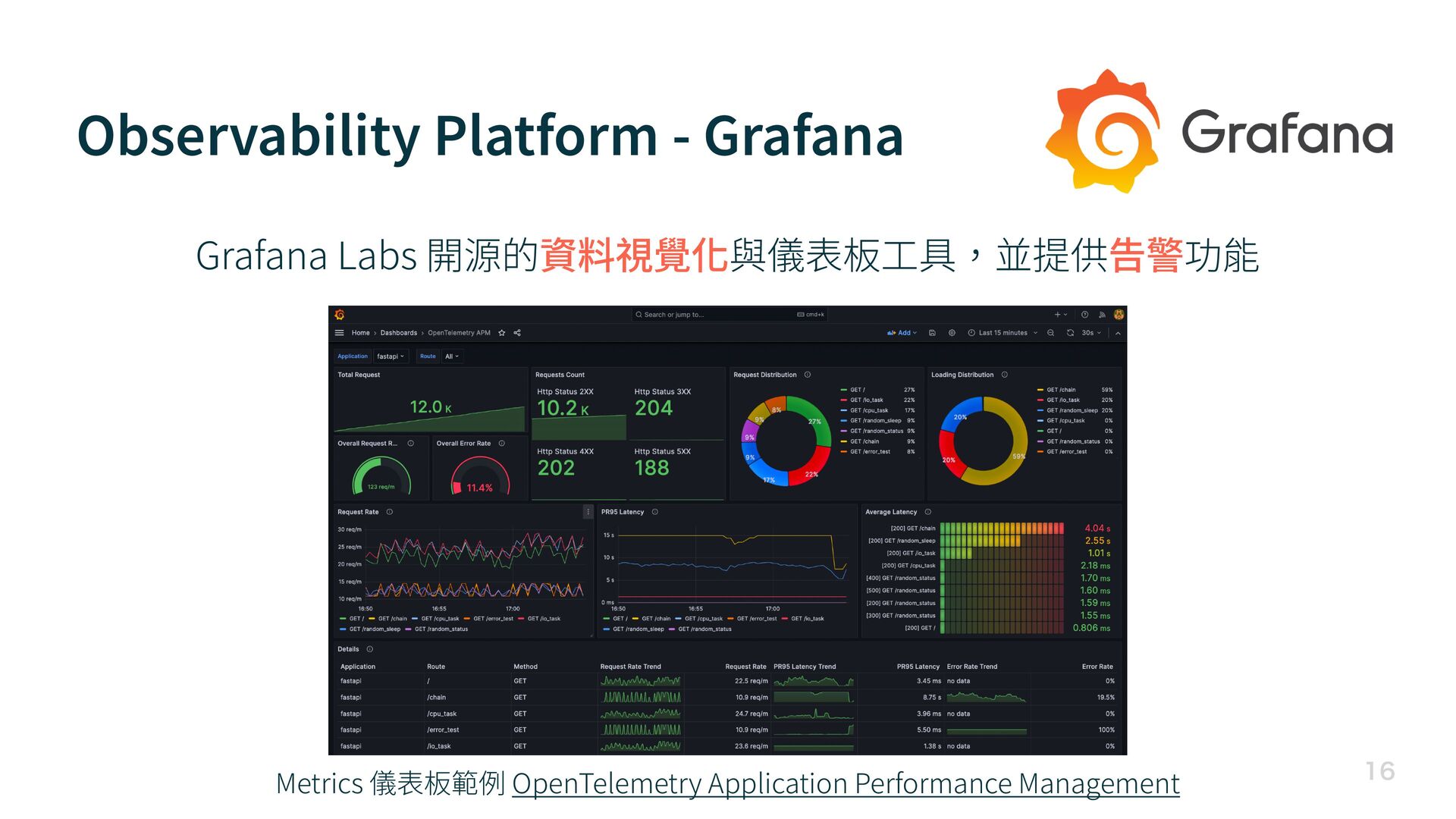 Observability Platform - Grafana Metrics 儀表板範例 OpenTelemetry Application Performance