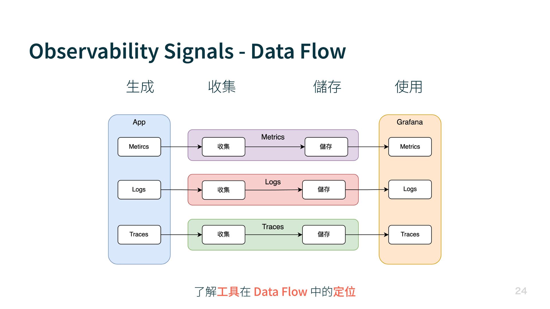 Observability Signals - Data Flow 生 成 收集 儲存