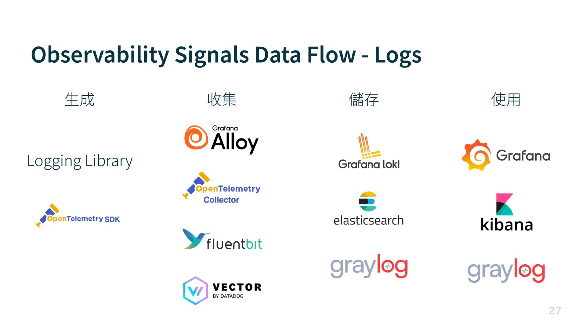 Observability Signals Data Flow - Logs Logging Library 生