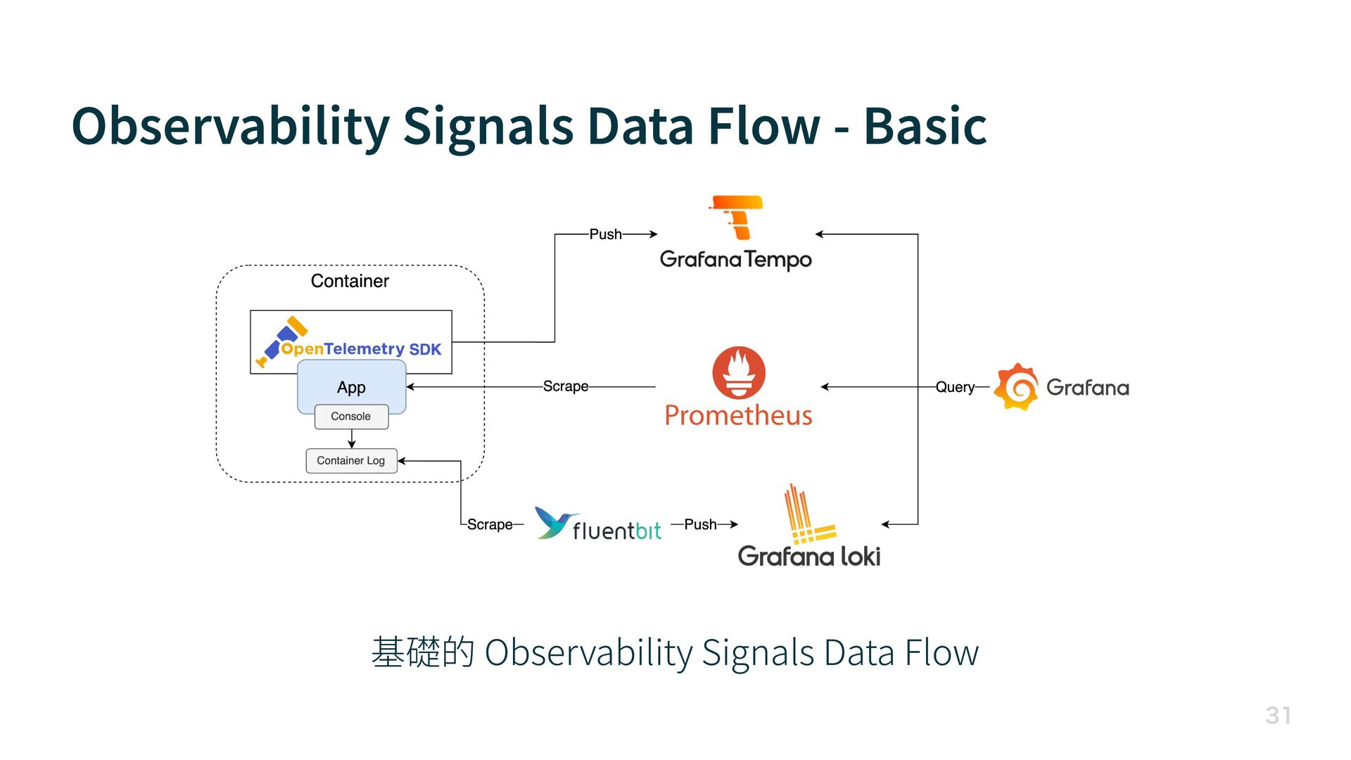 Observability Signals Data Flow - Basic 基礎的 Observability Signals